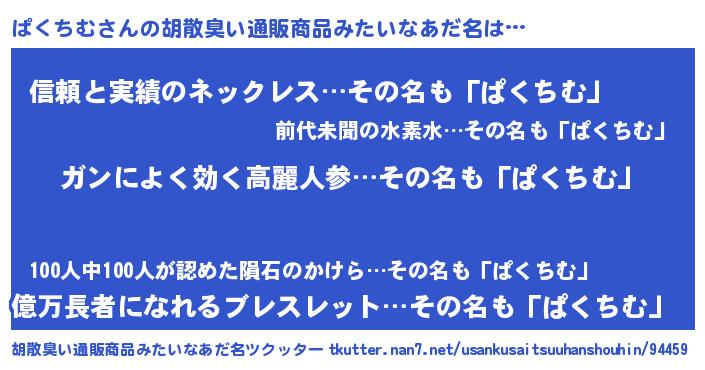 | 意味不明あだ名 | 『自称ぱくちむ』『エリンギ科ぱくちむ属』 |