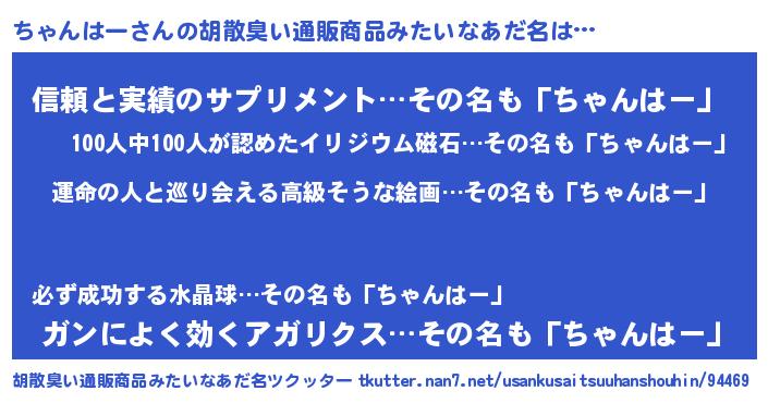 | 意味不明あだ名 | 『ちゃんはーフォーエバー』 |