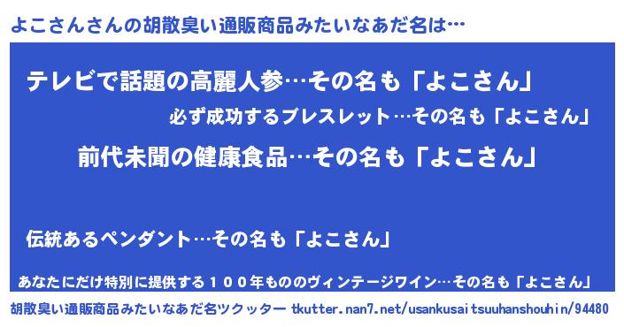 よこさんさんの胡散臭い通販商品みたいなあだ名をツクッター!