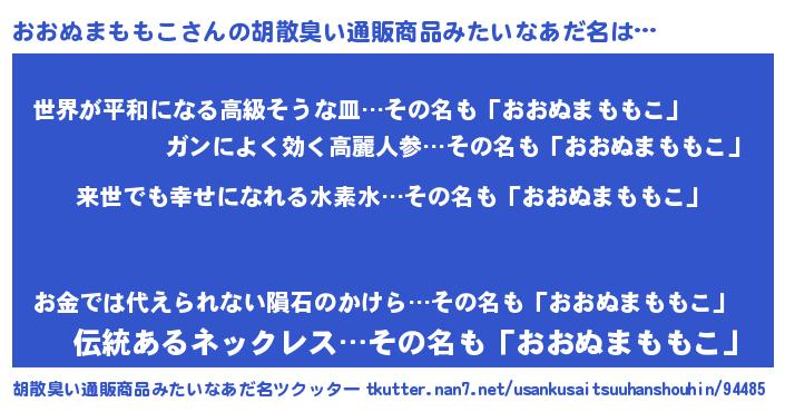 | 意味不明あだ名 | 『永久保存おおぬまももこ』 |