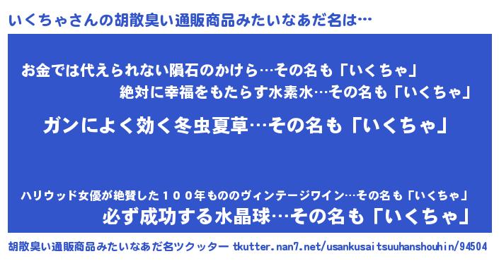 | ヒーロー風カッコイイあだ名 | 『ウルトラ戦士イクチャ』『ネオイクチャ』 |