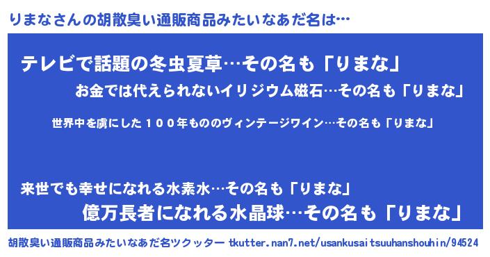 | ヘコむあだ名 | 『りまにー』『りまな(笑)』 |
