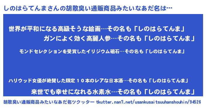 | ヒーロー風カッコイイあだ名 | 『慈愛の使者しのはらてんま』 |