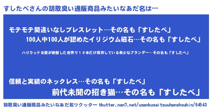 | 意味不明あだ名 | 『住所不定無職すしたべ(89歳)』 |