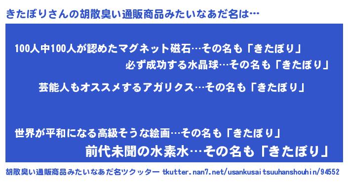 | 意味不明あだ名 | 『自称きたぼり』『永久保存きたぼり』 |