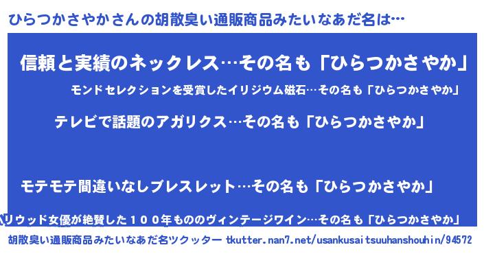 | 肩書あだ名 | 『ひらつかさやか閣下』 |
