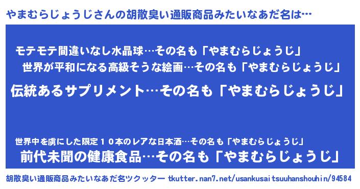 | 意味不明あだ名 | 『とにかく怪しいやまむらじょうじ』 |