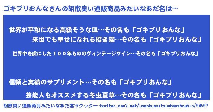 | 意味不明あだ名 | 『住所不定無職ゴキブリおんな(8歳)』 |
