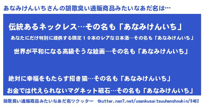 | ポケモン風あだ名 | 『アナミダネ』『ヒアナミケンイチ』 |