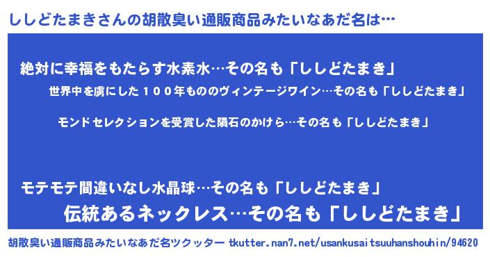 | ヘコむあだ名 | 『ししどたまき(苦笑)』『ししお』 |