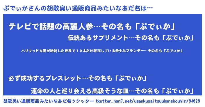 | 意味不明あだ名 | 『住所不定無職ぷでぃか(91歳)』 |