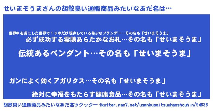 | ヘコむあだ名 | 『せいっちょ』『せいまそうま(苦笑)』 |