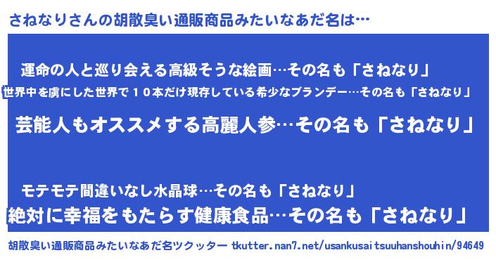 | 意味不明あだ名 | 『自称さねなり』『さねなりフォーエバー』 |