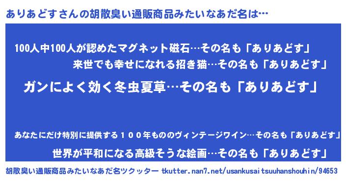 | 意味不明あだ名 | 『自称ありあどす』『永久保存ありあどす』 |
