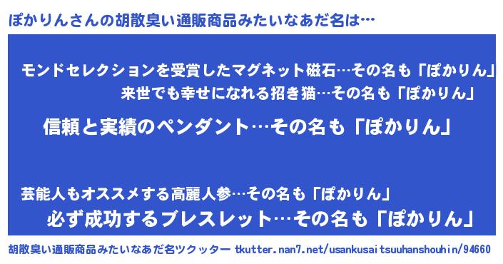 | 恥ずかしいあだ名 | 『ポカリンリン』『ボンバーヘッドぽか』 |
