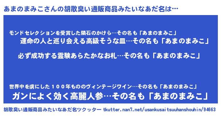 | 欧米人風あだ名 | 『マイケルあまのまみこ』 |