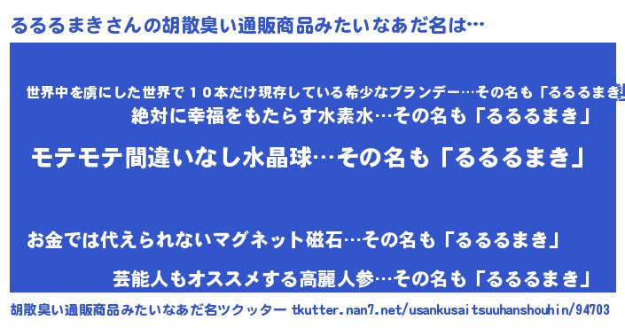 | ヘコむあだ名 | 『るるにゅー』『るるるまき(遠い目)』 |