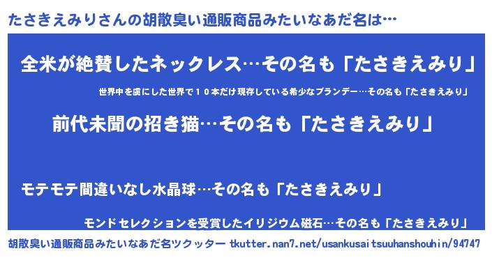 | 意味不明あだ名 | 『永久保存たさきえみり』 |