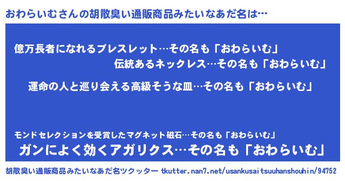 おわらいむさんの胡散臭い通販商品みたいなあだ名をツクッター!
