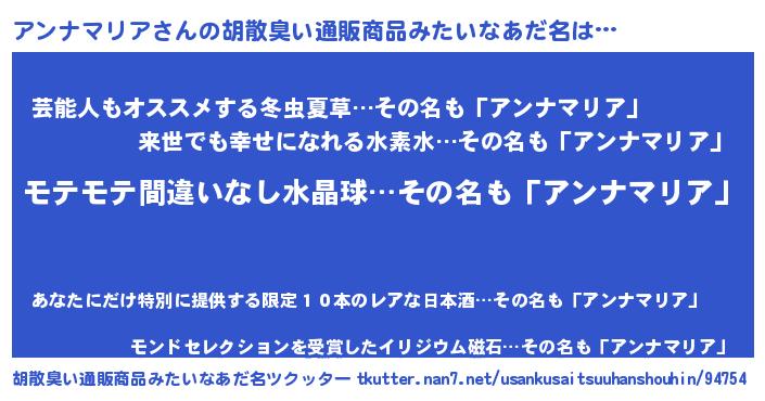 | ヘコむあだ名 | 『アンにゅー』『アンナマリア(笑)』 |