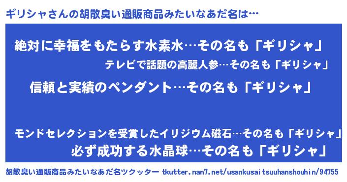 | ヘコむあだ名 | 『ギリぷりん』『ギリシャ(小並感)』 |