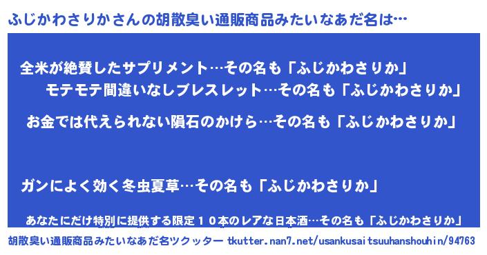 | ヒーロー風カッコイイあだ名 | 『慈愛の使者ふじかわさりか』 |
