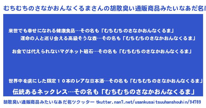 | ヘコむあだ名 | 『むちむちのさなかおんなくるま(小並感)』 |