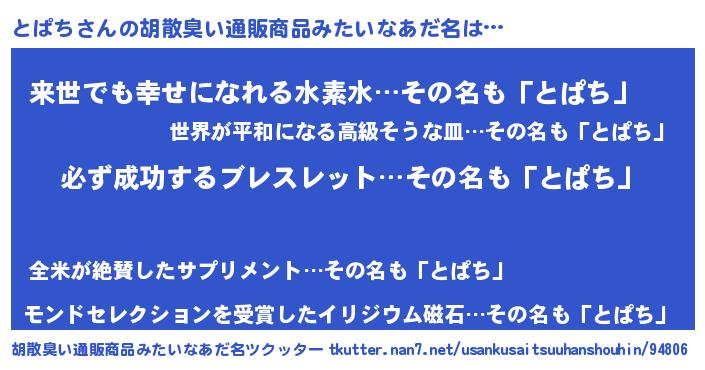 | ヒーロー風カッコイイあだ名 | 『スーパートパチ』『ネオトパチ』 |