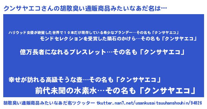 | ヘコむあだ名 | 『クンふぇ~』『クンサヤエコ(遠い目)』 |