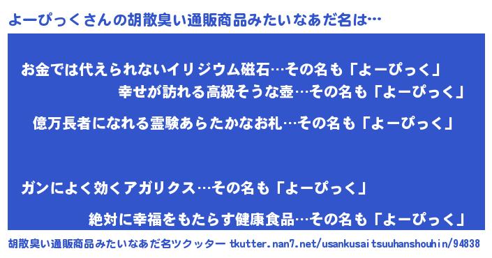 | ヘコむあだ名 | 『よーもー』『よーぴっく(笑)』 |