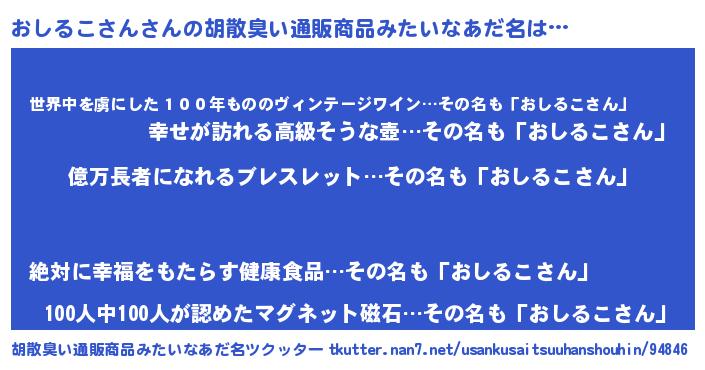 | ヒーロー風カッコイイあだ名 | 『スーパーオシルコサン』『仮面オシダー』 |