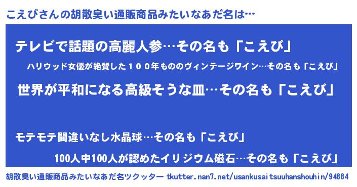 | 意味不明あだ名 | 『こえびフォーエバー』『自称こえび』 |