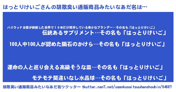 | 欧米人風あだ名 | 『はっとりけいご・ステッグマイヤー』 |