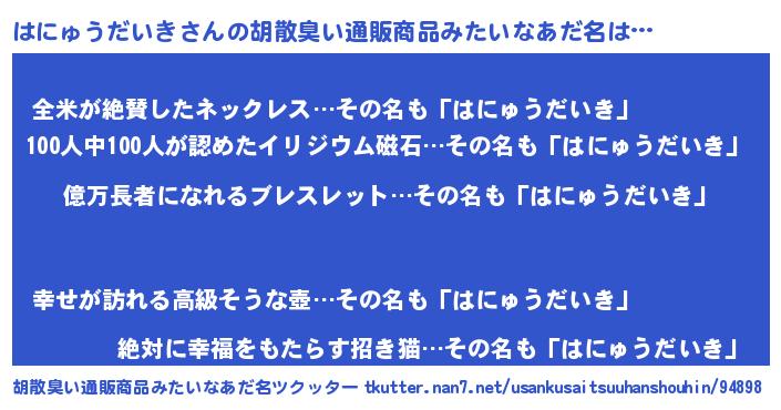 | ヘコむあだ名 | 『はににー』『はにっ子』『牛乳』 |