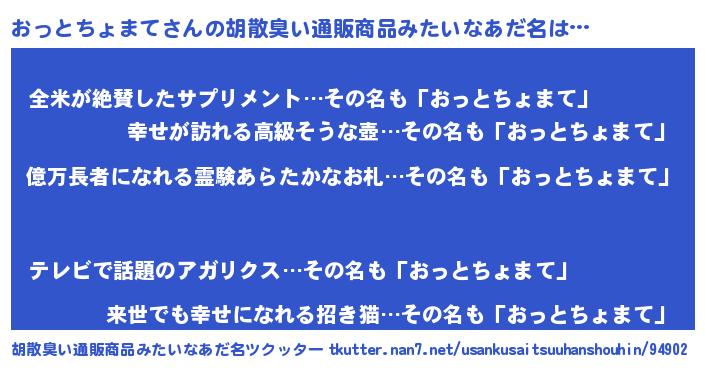 | ヒーロー風カッコイイあだ名 | 『スーパーオットチョマテ』 |