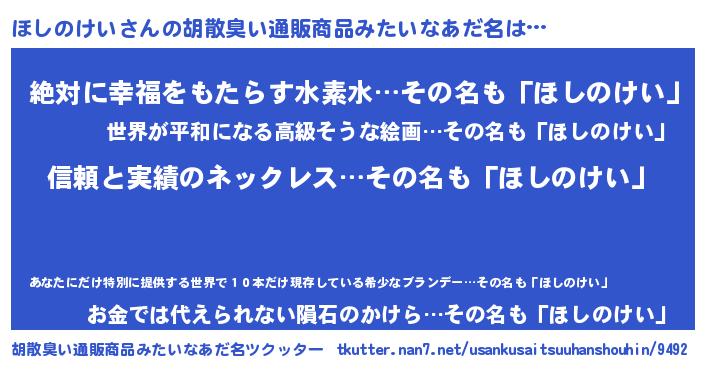 | ヒーロー風カッコイイあだ名 | 『暗黒騎士ホシ』『ネオホシノケイ』 |