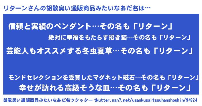 | 欧米人風あだ名 | 『トリンドルリターン』 |