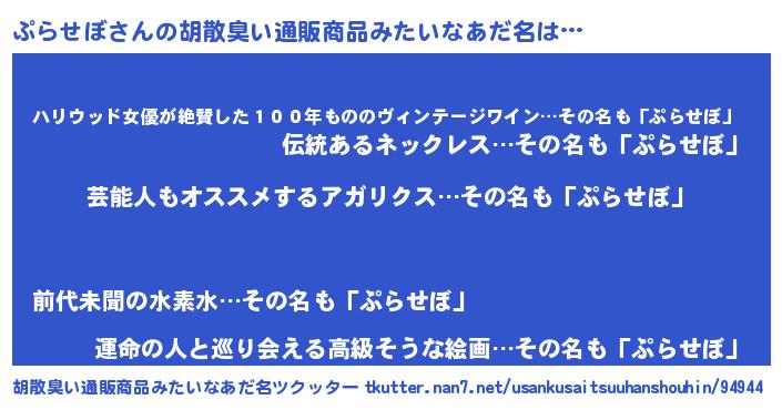 | 男性向けラノベタイトル風あだ名 | 『Re:ぷらせぼから始める異世界生活』 |