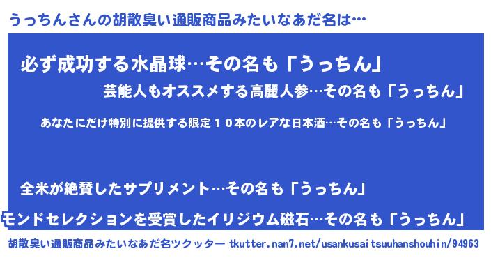 | 意味不明あだ名 | 『住所不定無職うっちん(40歳)』 |