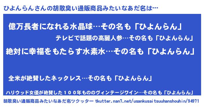 | ヘコむあだ名 | 『ひよんらん(苦笑)』『ひよにゅー』 |