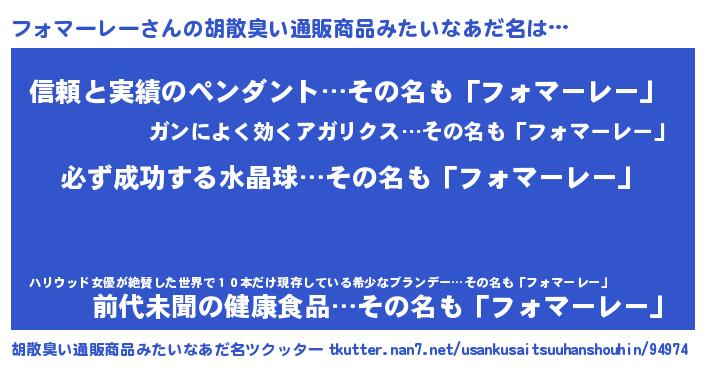 | 男性向けラノベタイトル風あだ名 | 『フォマーレーの憂鬱』 |