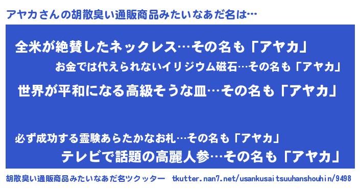 | ポケモン風あだ名 | 『アヤカダネ』『アヤキング』 |