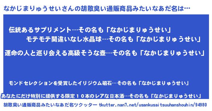 | 肩書あだ名 | 『なかじまりゅうせい大統領』 |