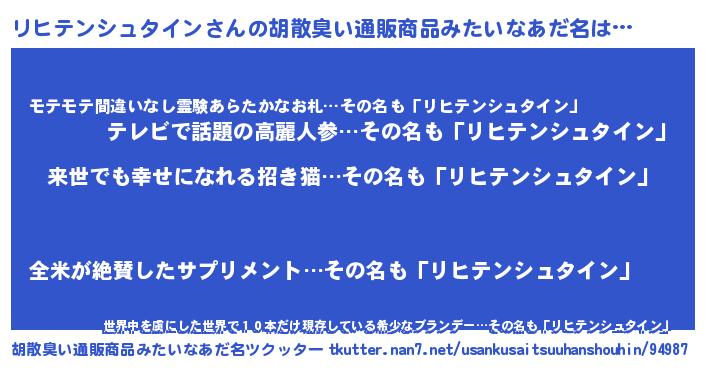 | 伝説のあだ名 | 『古より伝わる吟遊詩人リヒテンシュタイン』 |