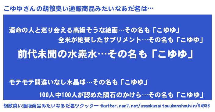 | ファンタジー風あだ名 | 『コユディッシュ』『ユリコユヴァット』 |