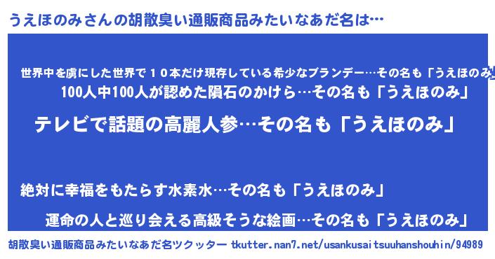 | 意味不明あだ名 | 『自称うえほのみ』『永久保存うえほのみ』 |