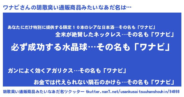 | ヘコむあだ名 | 『ワナふぇ~』『ワナ太郎』 |