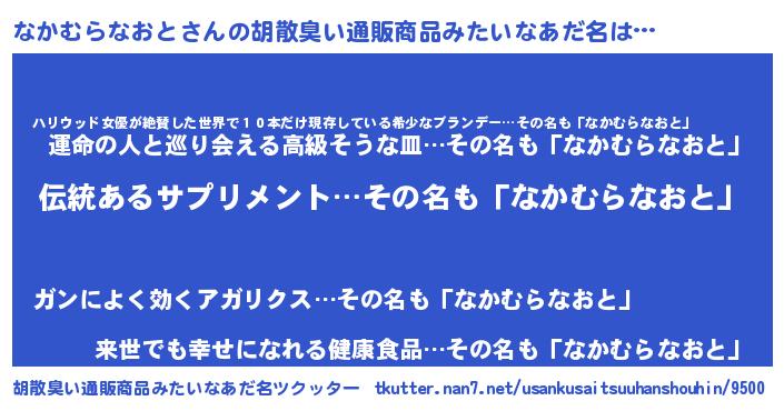 | ヘコむあだ名 | 『なかを』『なかむらなおと(笑)』 |