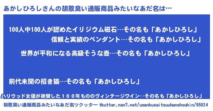 | 男性向けラノベタイトル風あだ名 | 『転生したらあかしひろしだった件』 |