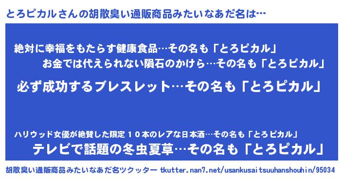 | 男性向けラノベタイトル風あだ名 | 『とろピカルの憂鬱』 |